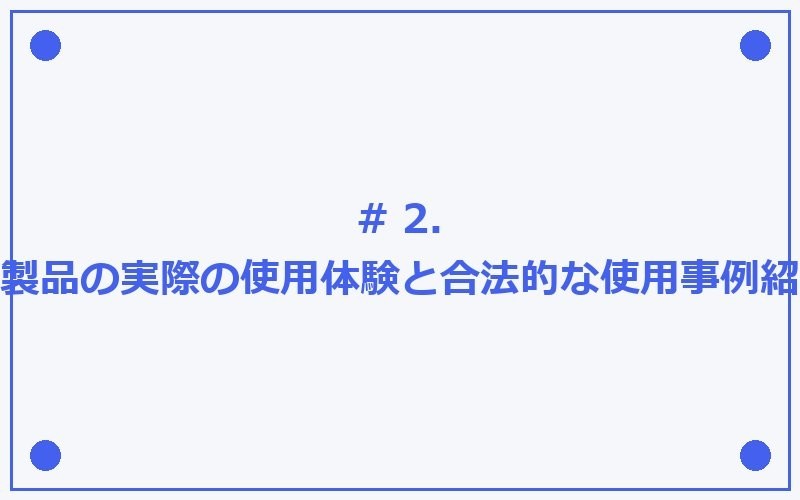 # 2. 各製品の実際の使用体験と合法的な使用事例紹介