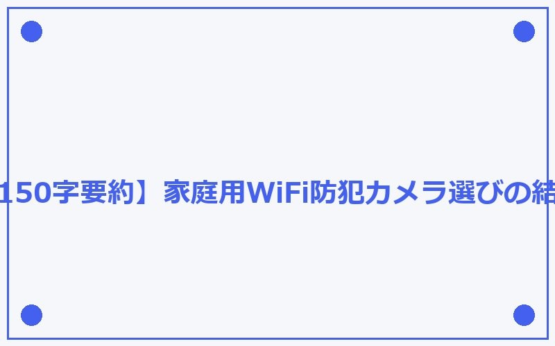 【150字要約】家庭用WiFi防犯カメラ選びの結論