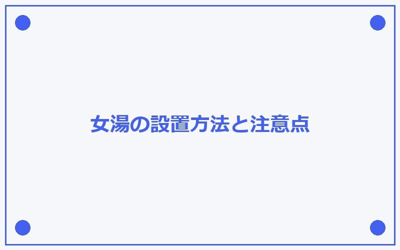: 女湯の設置方法としては、壁に取り付けるタイプや、床に設置するタイプがあります。壁に取り付けるタイプは、視覚的に目立ちにくく、設置が容易です。一方、床に設置するタイプは、視覚的に目立ちにくく、設置が難しい場合があります。